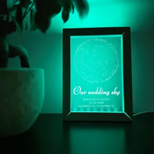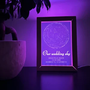 Aceste lămpi LED pentru numerele de masă aduc un strop de rafinament și frumusețe decorului de nuntă. Fiecare lampă este gravată cu numărul mesei într-un design clar, accentuat de un cadru geometric elegant și detalii florale stilizate. Lumina LED ambientală oferă un efect delicat, ideal pentru a crea o atmosferă caldă și primitoare la eveniment. Baza simplă și modernă completează estetica sofisticată, făcând aceste lămpi ideale pentru a ghida invitații către locurile lor într-un mod memorabil și elegant. Perfecte pentru nunți sau alte evenimente speciale, aceste lămpi adaugă un plus de eleganță și rafinament fiecărei mese.